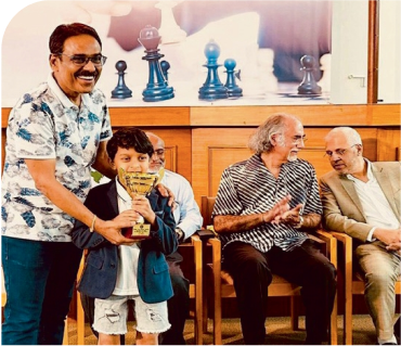 As part of inauguration ceremony of the Indian School Bahrain Community Sports Fest-2023, the Indian Ambassador, Shri Piyush Srivastava inaugurated the Chaturanga Chess Tournament organized in association with Arjuna’s Chess Academy. One of our student, Nyrav Gopalakrishnan, of Grade 2-D got the privilege of playing the opening game of chess with the honourable Ambassador.
