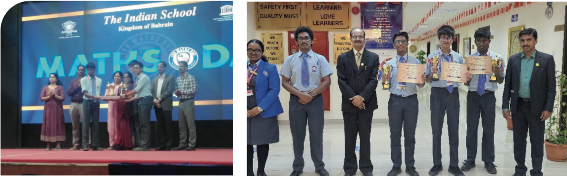 Team comprising of Noel Thomas of 9D, Farhan Dilshad Siddiqui of 10A and Shayan Tanveer of 11B won the second position in Math quiz conducted by Indian school.