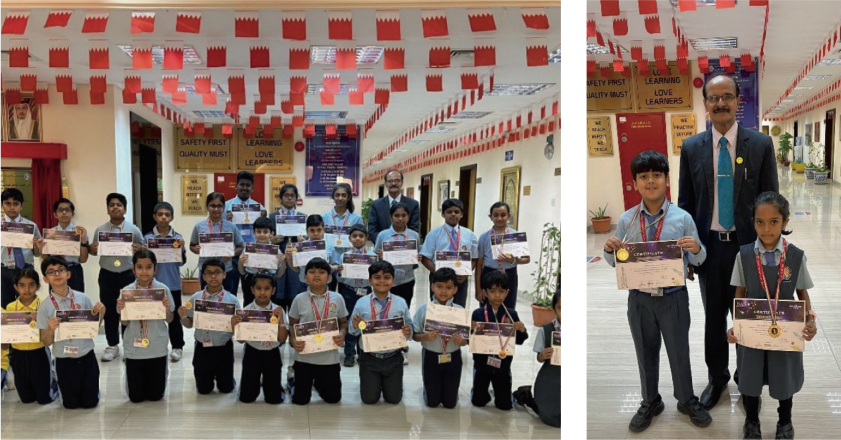 Andrev Ivan of grade 10 B topped in 100 students in the CBSE AryaBhata Ganit Challenge. He is one among the top 100 students selected by the CBSE from all the schools over India and the only one selected from Bahrain.